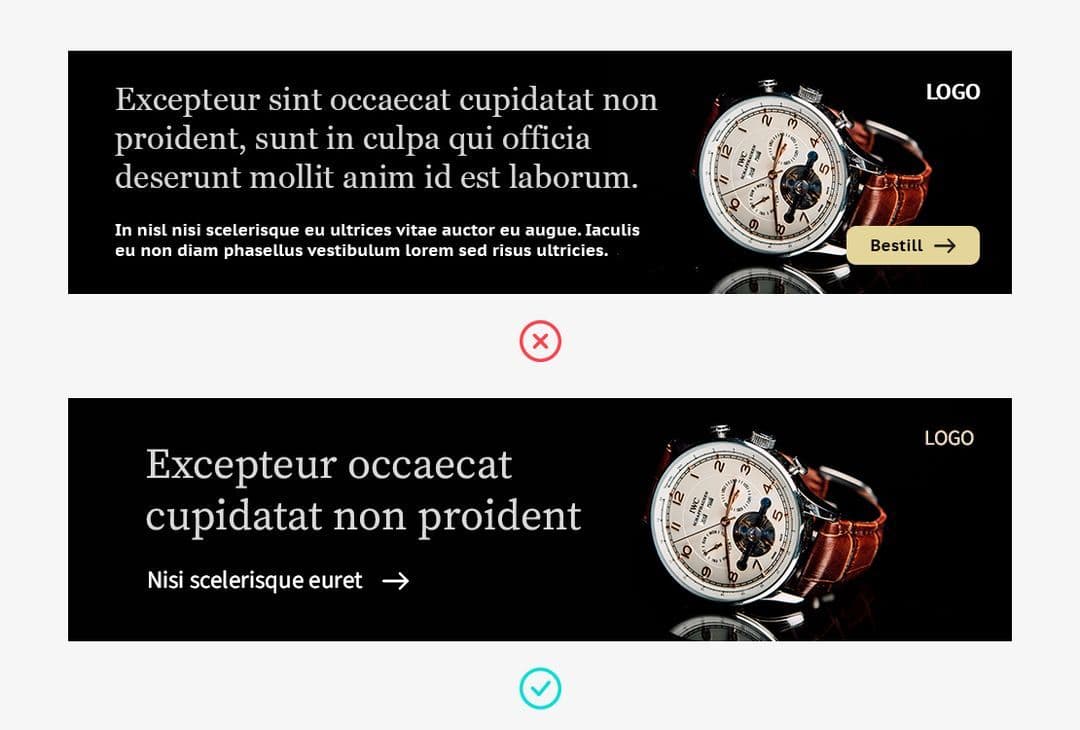 Skal du veksle mellom flere budskap vil også dette påvirke filstørrelsen, som igjen går ut over kvaliteten på bannerannonsen.