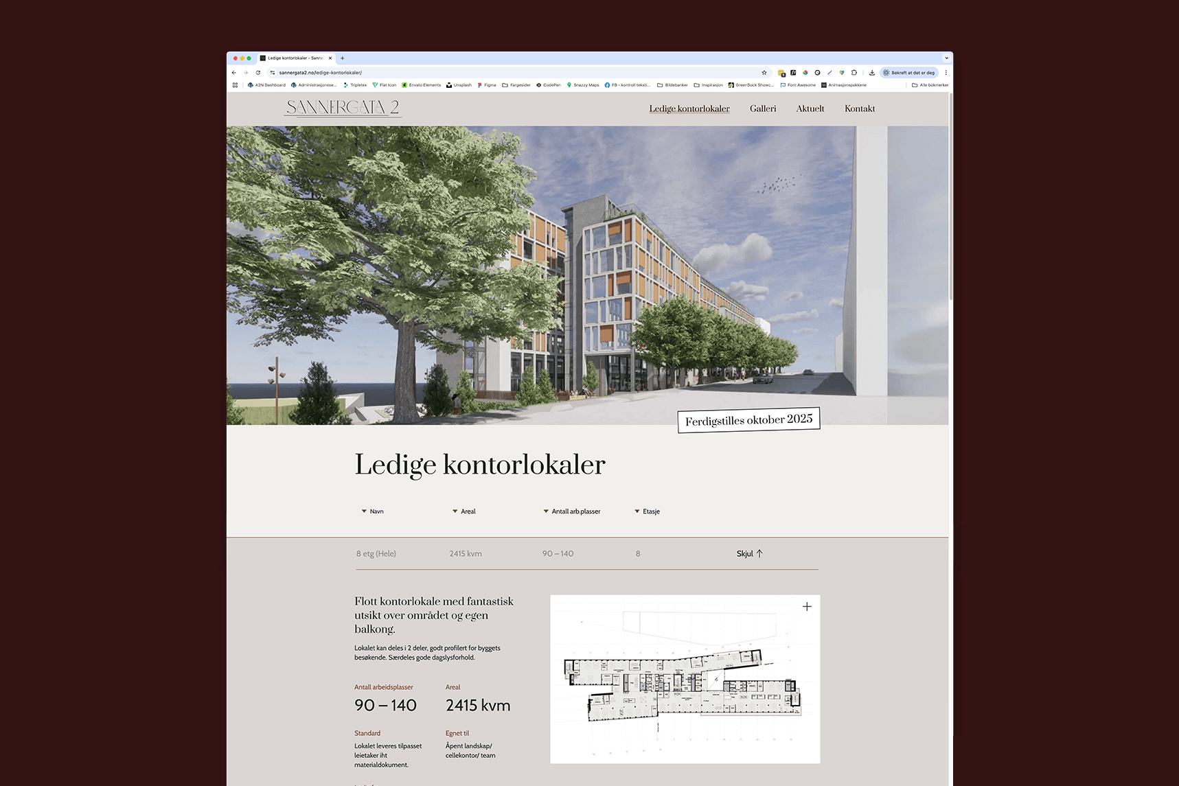 Nettsiden er utviklet i WordPress og skreddersydd for å imøtekomme Ragde Eiendoms behov, med en intuitiv struktur, responsivt design og enkle oppdateringsmuligheter. Vi har optimalisert brukeropplevelsen med en tydelig informasjonsarkitektur, visuelle elementer som understreker prosjektets kvaliteter og fasiliteter, samt en navigasjon som gjør det enkelt for potensielle leietakere å finne relevant informasjon.