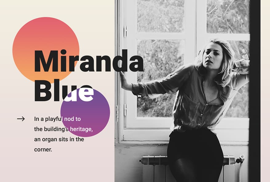 Farger er viktig verktøy når du ønsker å få frem et budskap eller handling på siden din. Graderinger har vært en stor trend de siste årene, men det siste året har trenden vokst seg enda sterkere og sprekere. De skarpe fargene kan bidra til at designet ditt skiller seg ut – særlig når det gjelder typografi. Våg å være litt crazy – farger er gøy!
