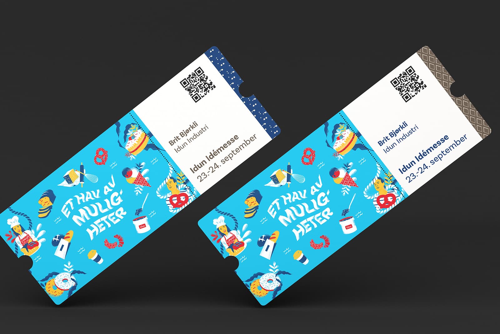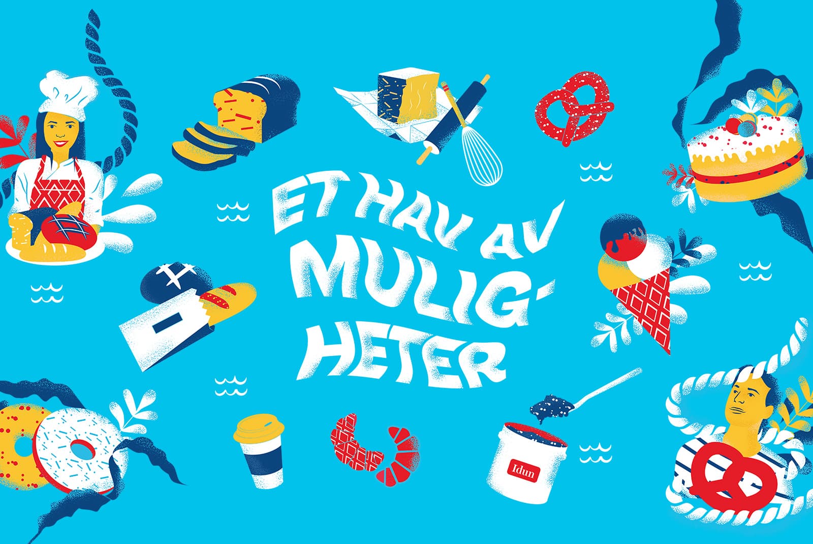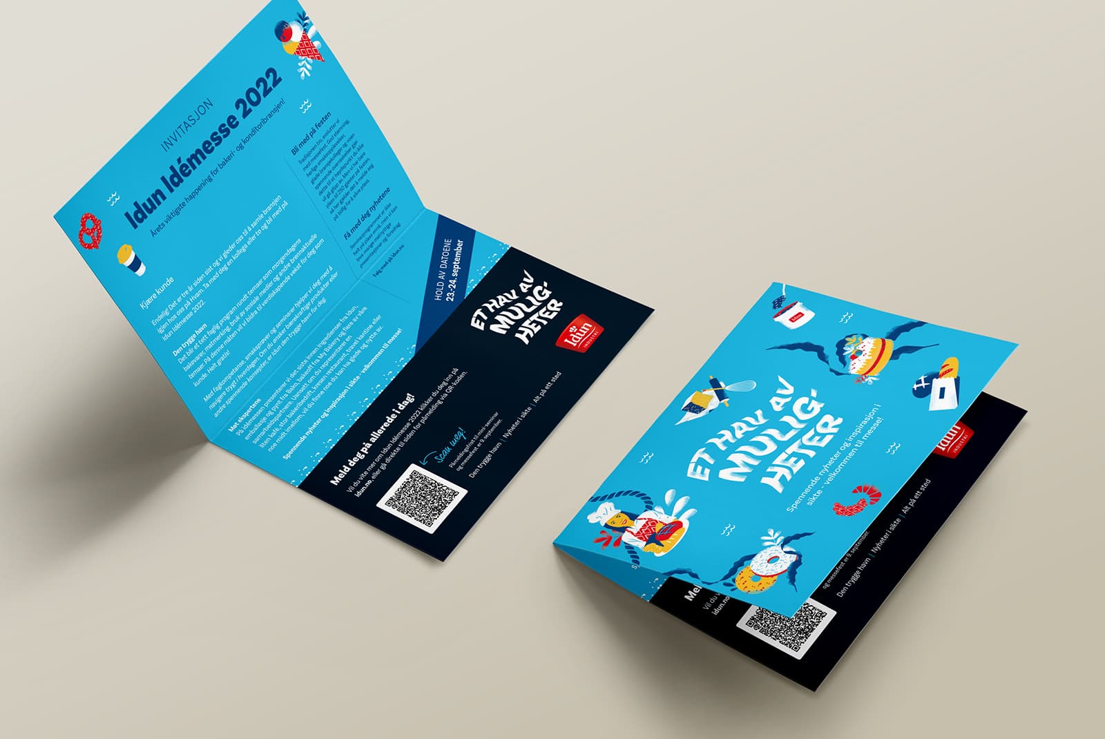 Vi designet en leken messelogo med assosiasjoner til bølger og hav. Sammen med denne utviklet vi unike illustrasjoner av Idun’s produkter, som ble et sterkt visuelt uttrykk på messen.