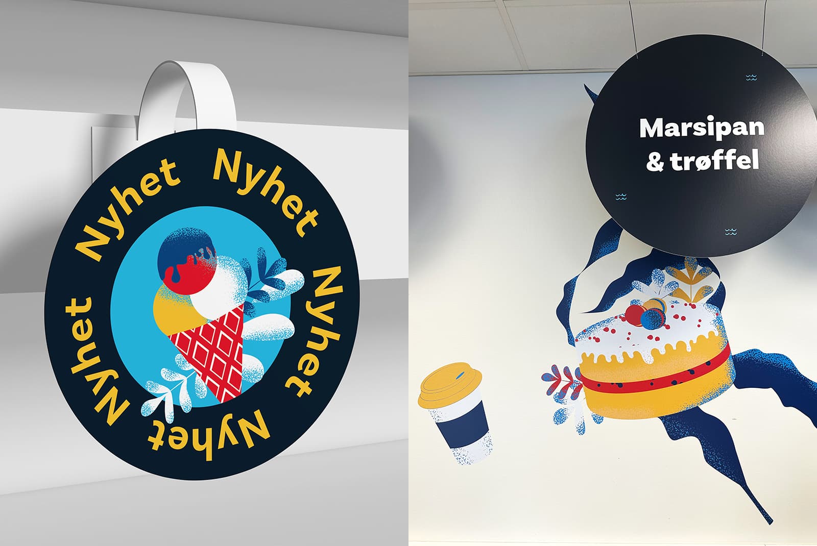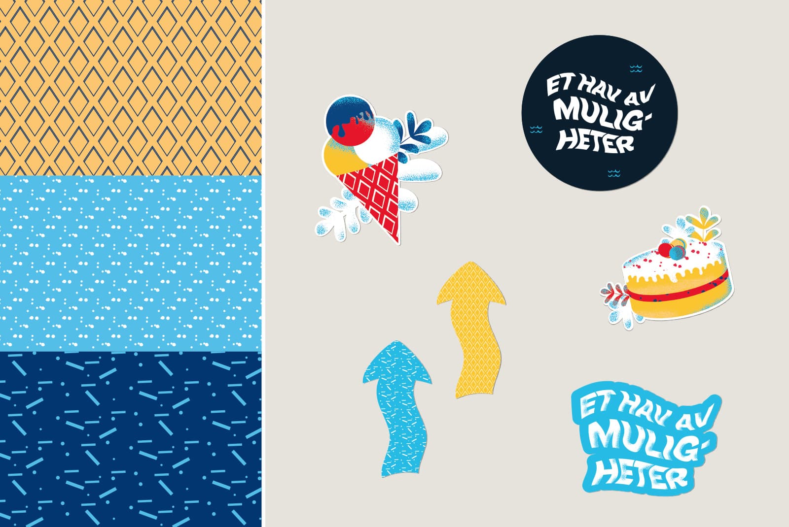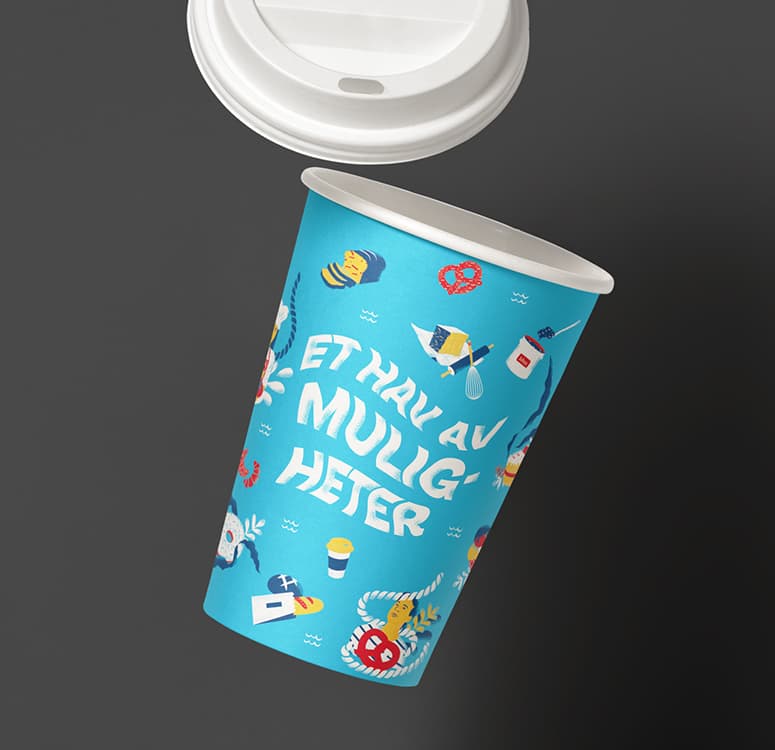 Vi designet en leken messelogo med assosiasjoner til bølger og hav. Sammen med denne utviklet vi unike illustrasjoner av Idun’s produkter, som ble et sterkt visuelt uttrykk på messen.