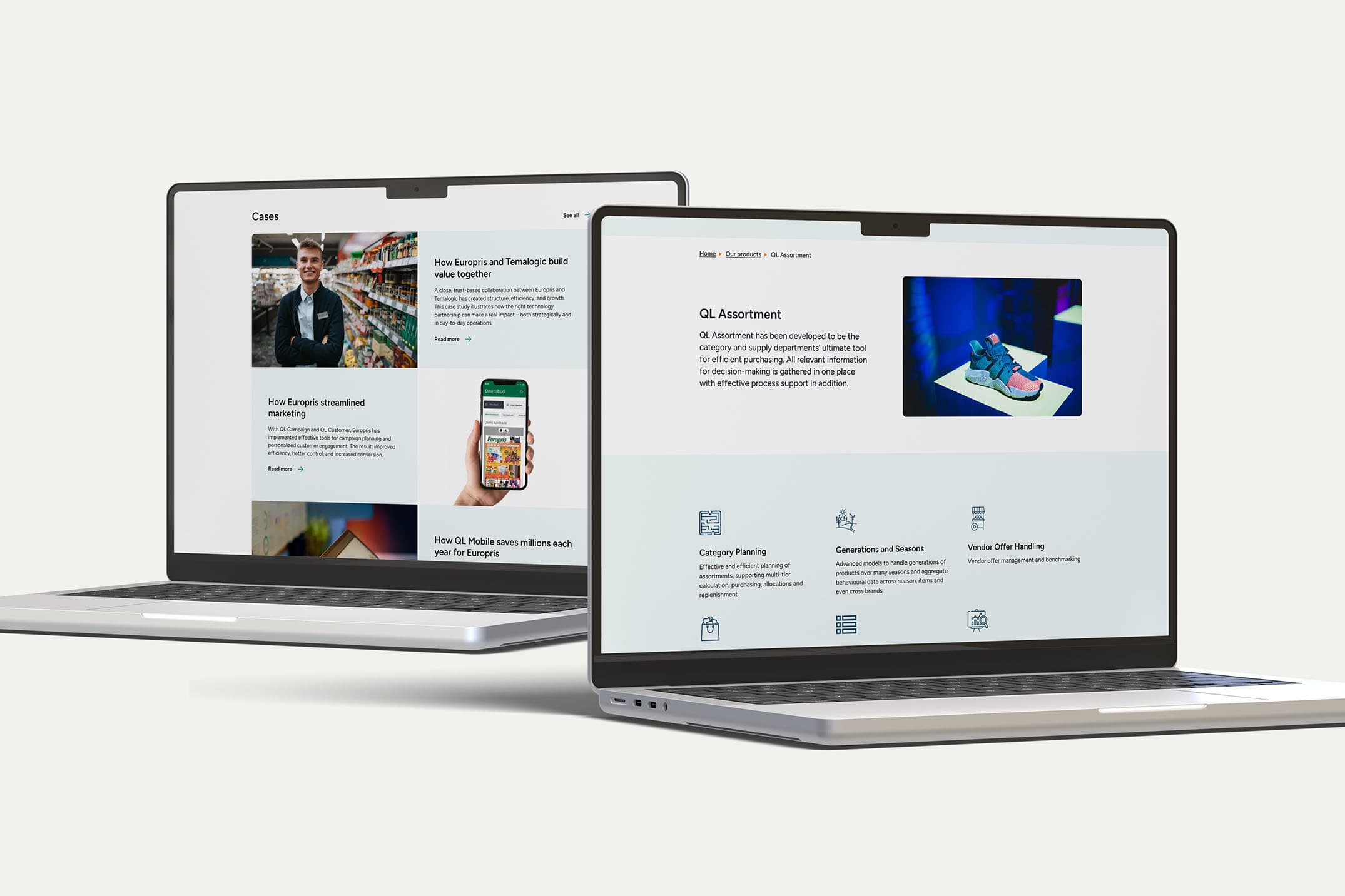 Gjennom workshops og tett samarbeid ble Temalogics identitet definert som et kompetansemiljø og en problemløser for retail, ikke bare et softwareselskap. Vi utviklet en ny merkevareplattform, en oppdatert visuell profil og innhold som løfter frem kulturen og menneskene bak systemene. Siden de manglet egne bilder, produserte vi nytt fotomateriale som viser det menneskelige i selskapet. For å gjøre det komplekse mer tilgjengelig utviklet vi også en animasjon som forklarer løsningene og tydeliggjør verdien for kundene.