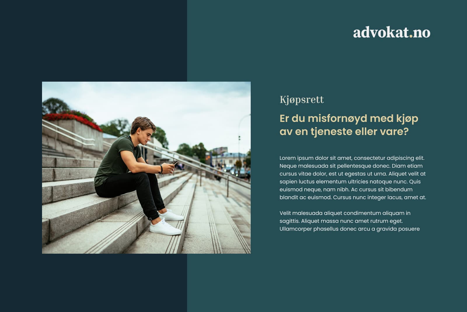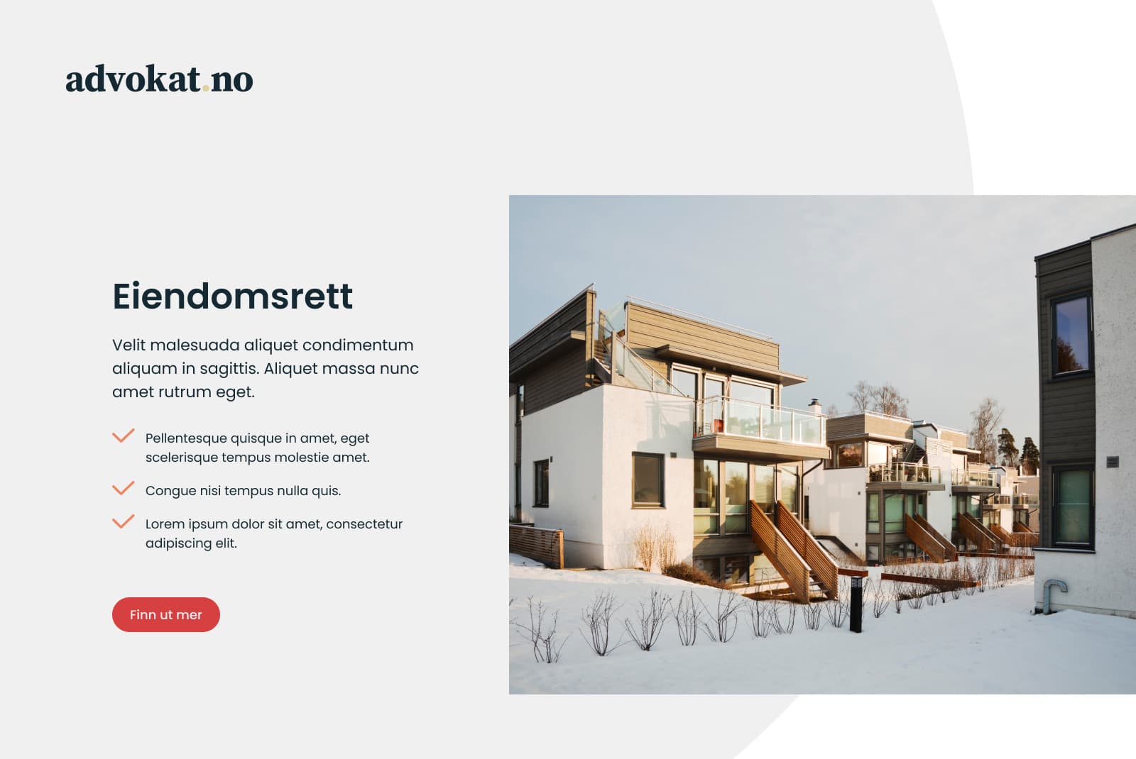 Et advokatselskap er gode på tekst, kanskje litt for gode. Med mye juridisk og viktig informasjon å fordøye for brukeren, var utfordringen til designer og prosjektleder stor. Nettsider med mye tekst og innhold har et sterkt behov for at innholdet brytes opp på en naturlig og fin måte. Designteamet i A2N har jobbet strukturert med brukervennlighet (UX) og brukergrensesnitt (UI) på tvers av alle enheter. Dette har muliggjort et sluttprodukt for å maksimere trafikk og antall henvendelser.